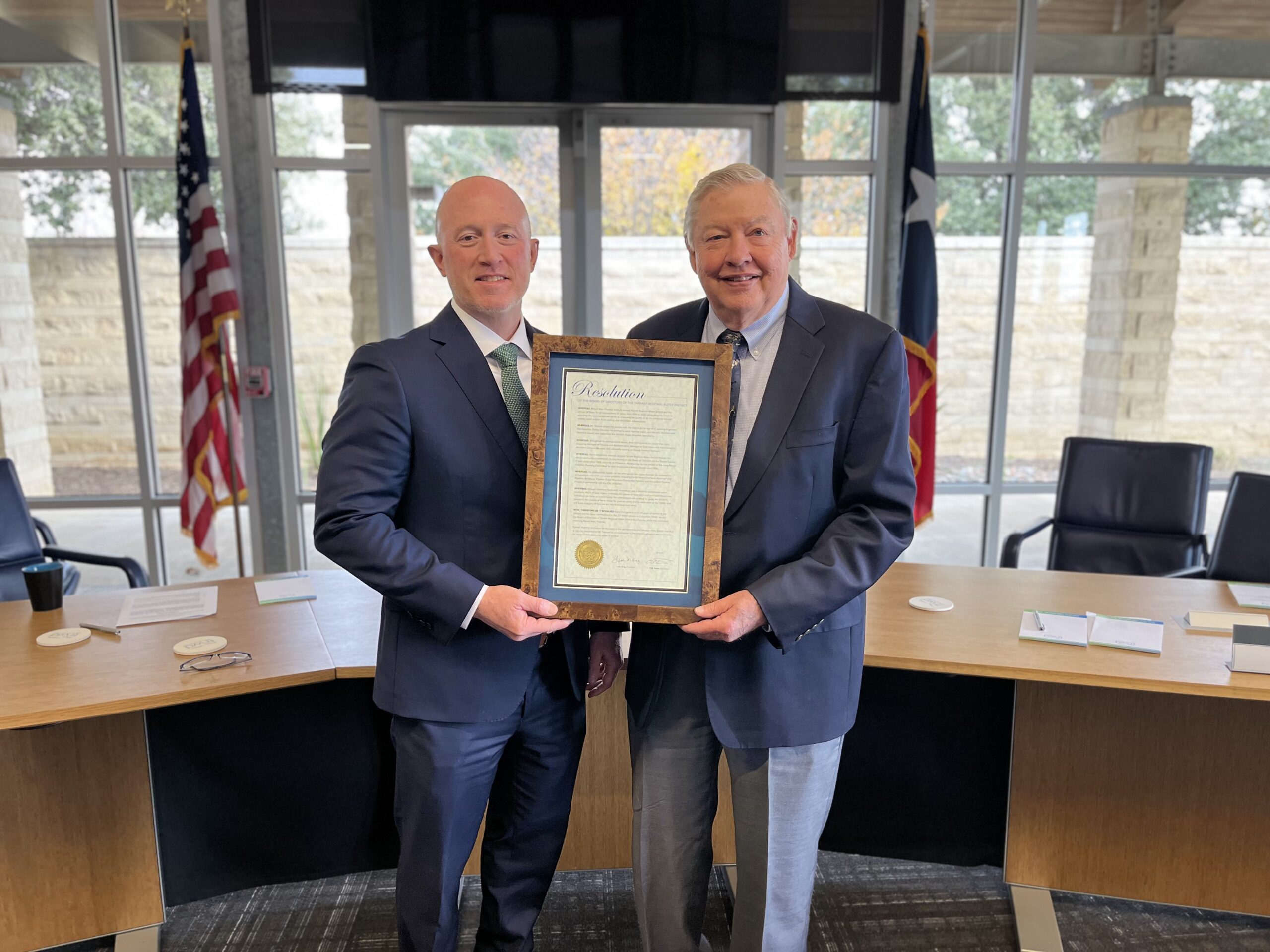 At TRWD’s December 16 Board Meeting, the Board of Directors honored Thomas with a resolution recognizing his decades of service to the organization and the 2.5 million people in 11 North Texas counties that the District provides services to every day.
