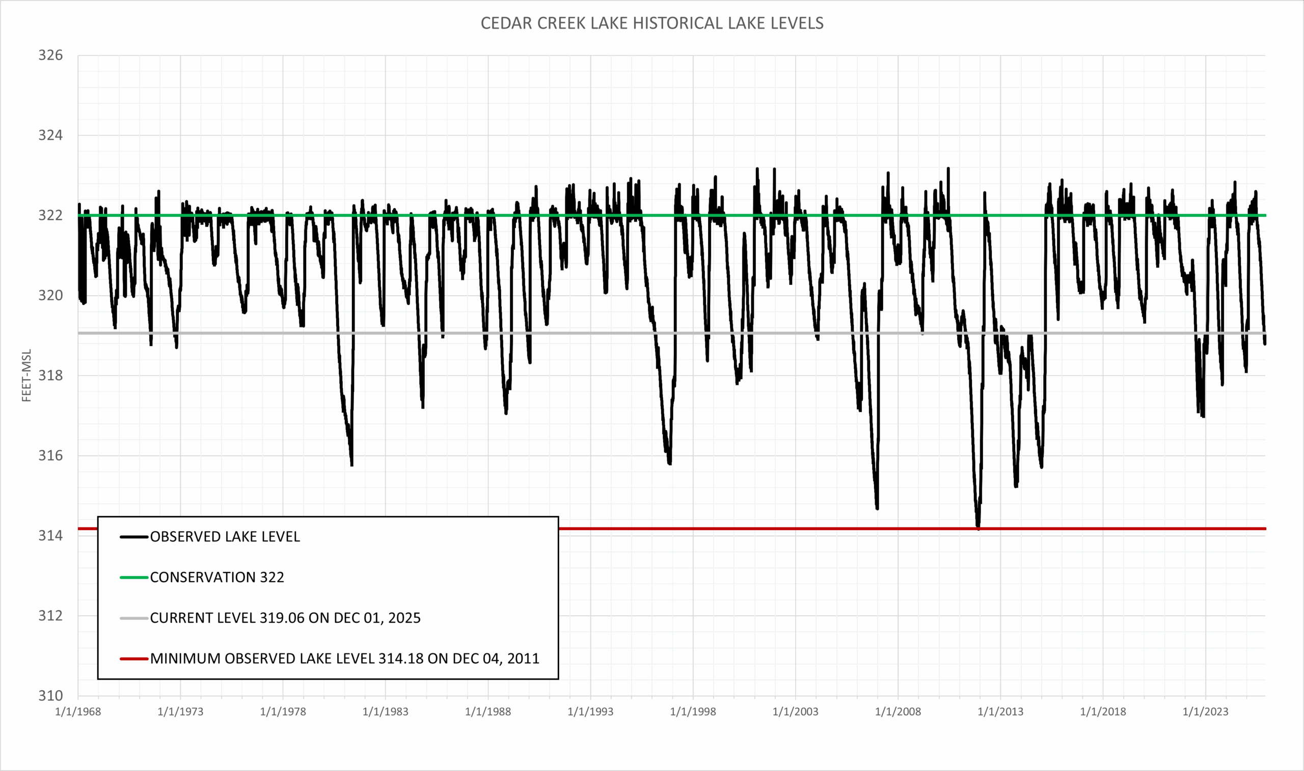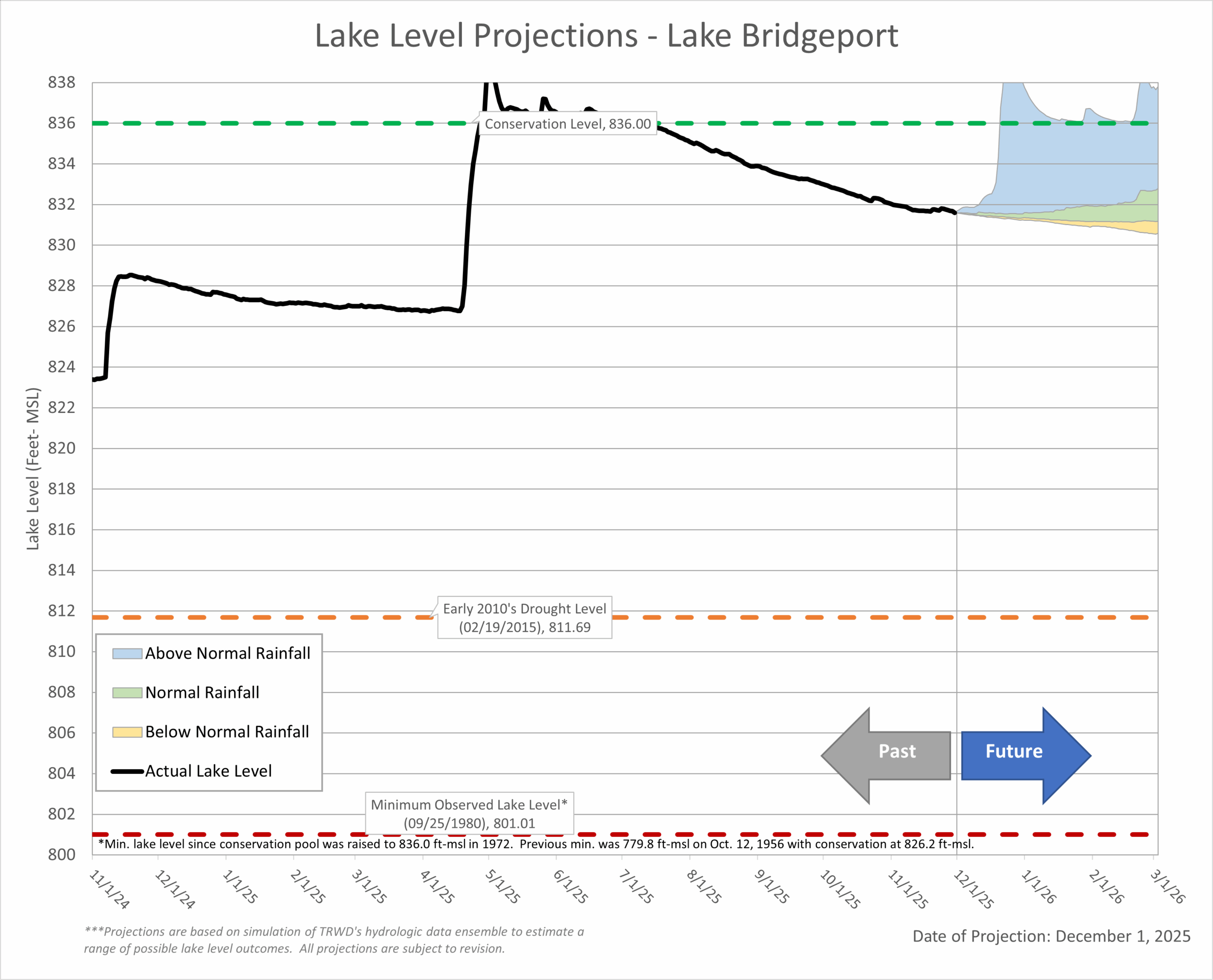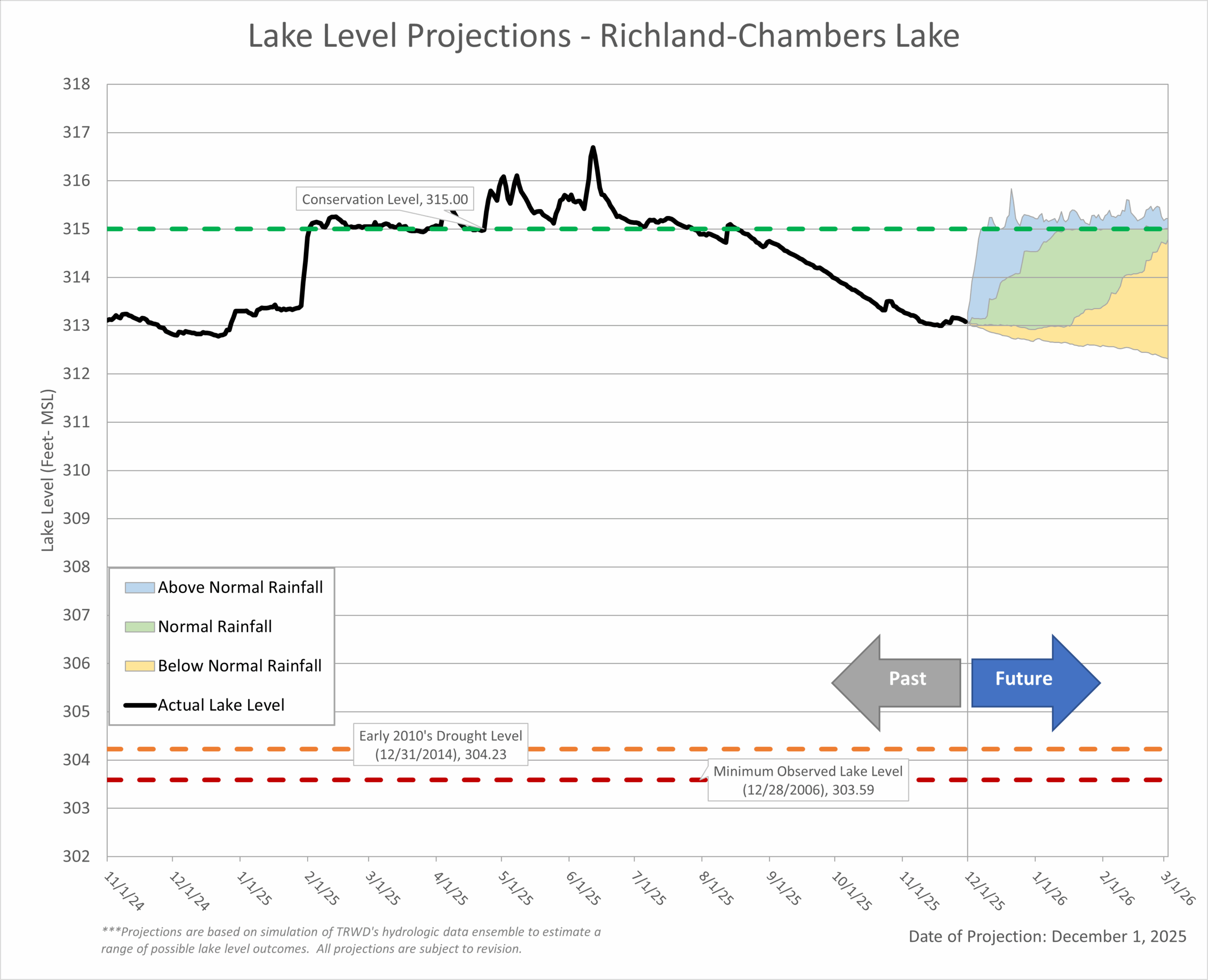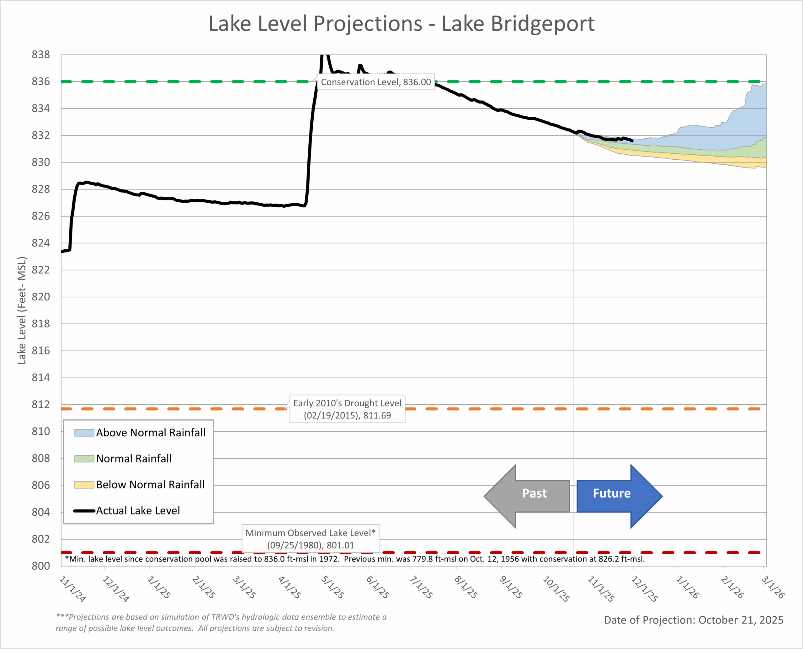 As we move into the coming weeks, conditions are expected to stay on the dry side, so lake levels will likely dip a bit. The good news? Cooler weather means less water demand and slower evaporation. Plus, with vegetation going dormant, the ground won’t soak up as much moisture—so any rain we do get has a better shot at turning into runoff. Bottom line: lake levels will decline, but the drop should be gradual.